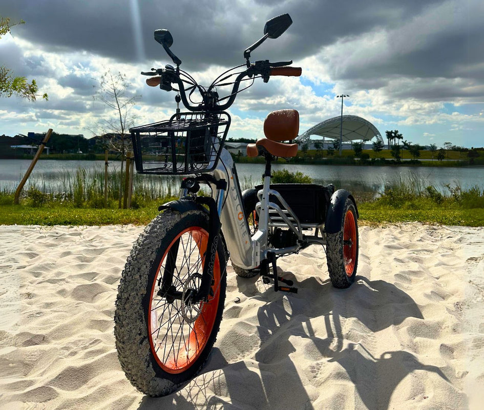 3SCORE ELECTRIC TRICYCLES HAVE BEEN DESIGNED IN MIAMI FLORIDA SINCE 2019. EACH HIGH-END COMPONENT WAS CAREFULLY SELECTED, CREATING A PERFECT BALANCE BETWEEN COMFORT, DURABILITY, SAFETY AND POWER.
